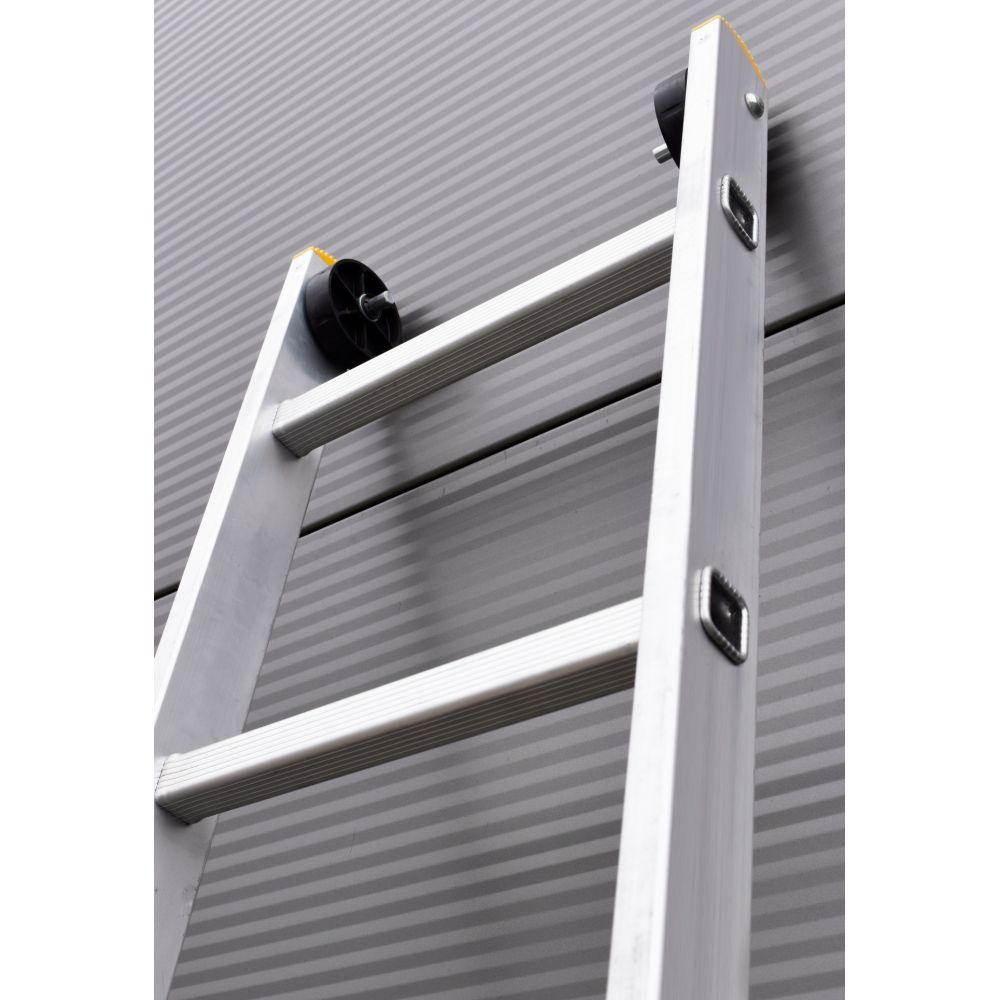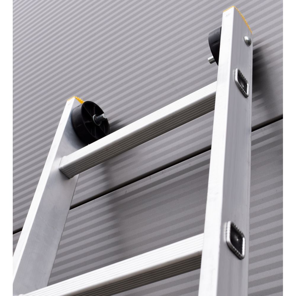 Přídavná kolečka výrazně usnadňují rozložení žebříku a umožnují jeho plynulý pohyb po fasádě, střeše a dalších plochách. Zabraňují poškrábání nebo poškození jak samotného žebříku, tak i povrchu. Umístění žebříku je rychlejší a méně únavné.