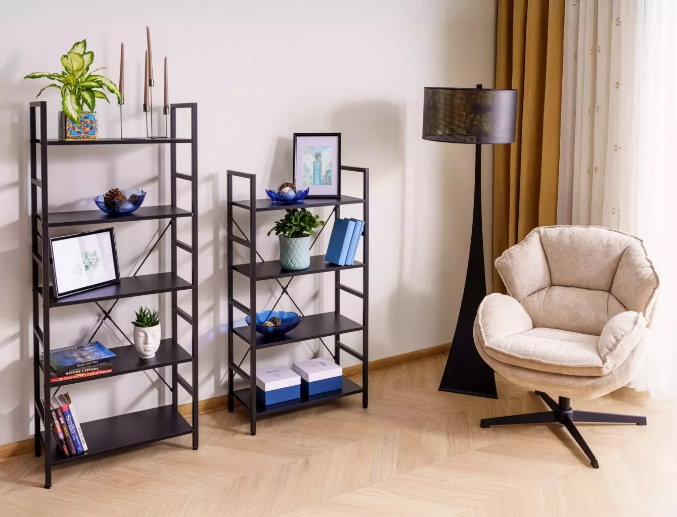 Dotaz na produkt Na splátky ještě dnesPolice, police: laminovaná deska, rám: kov, barva: černá / matná černá.
