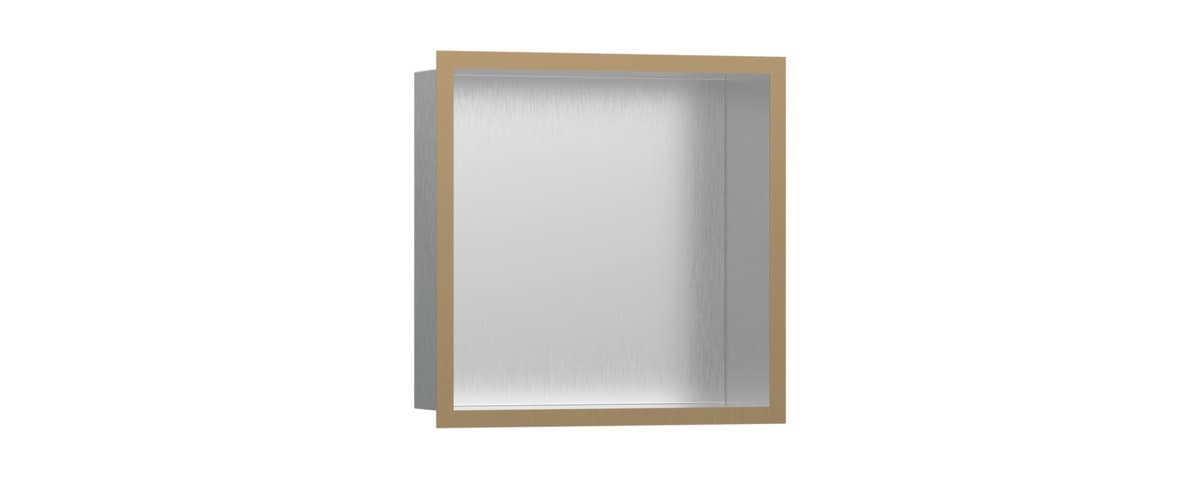 Dotaz na produkt Na splátky ještě dnesVýklenek do stěny XtraStoris Individual o rozměrech 30 x 30 x 10 cm s designovým rámem v kartáčovaném bronzu od hansgrohe je více než jen vysoce funkční polička do vlhkého prostředí. Korpus z kartáčované nerezové oceli v kombinaci s rámem v bronzové barvě promění výklenek do stěny v absolutní designový poklad každé moderní koupelny. Řešení poliček pro sprchy nebo koupelny je perfektně sladěno s produkty hansgrohe FinishPlus a skvěle zapadne do designu místnosti. Výsledkem je exkluzivní, čistý vzhled koupelny.