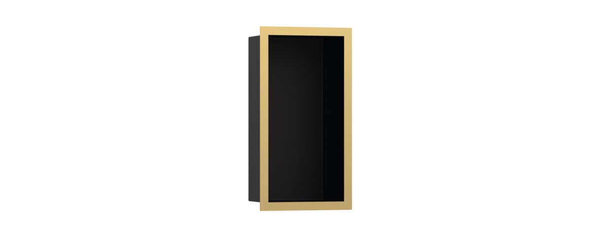 Dotaz na produkt Na splátky ještě dnesVýklenek do stěny XtraStoris Individual o rozměrech 30 x 15 x 10 cm v matné černé barvě s designovým rámem v leštěném vzhledu zlata od hansgrohe je více než jen vysoce funkční polička do vlhkého prostředí. Korpus z nerezové oceli v matné černé barvě v kombinaci s rámem v leštěném vzhledu zlata promění výklenek do stěny v absolutní designový poklad každé moderní koupelny. Řešení poliček pro sprchy nebo koupelny je perfektně sladěno s produkty hansgrohe FinishPlus a skvěle zapadne do designu místnosti. A výsledek? Exkluzivní, čistý vzhled koupelny.
