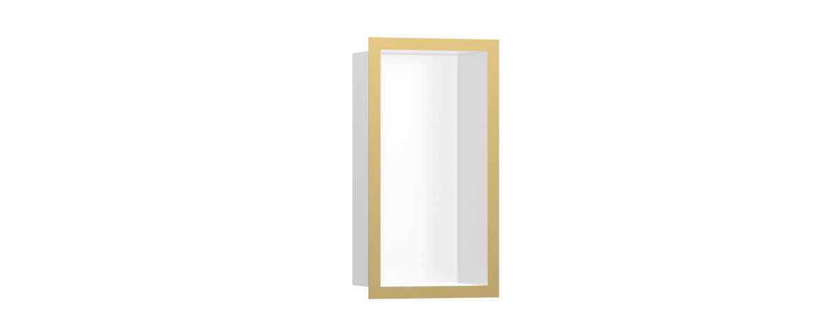Dotaz na produkt Na splátky ještě dnesVýklenek do stěny XtraStoris Individual o rozměrech 30 x 15 x 10 cm v matné bílé barvě s designovým rámem v leštěném vzhledu zlata od hansgrohe je více než jen vysoce funkční polička do vlhkého prostředí. Korpus z nerezové oceli v matné bílé barvě v kombinaci s rámem v leštěném vzhledu zlata promění výklenek do stěny v absolutní designový poklad každé moderní koupelny. Řešení poliček pro sprchy nebo koupelny je perfektně sladěno s produkty hansgrohe FinishPlus a skvěle zapadne do designu místnosti. A výsledek? Exkluzivní, čistý vzhled koupelny.