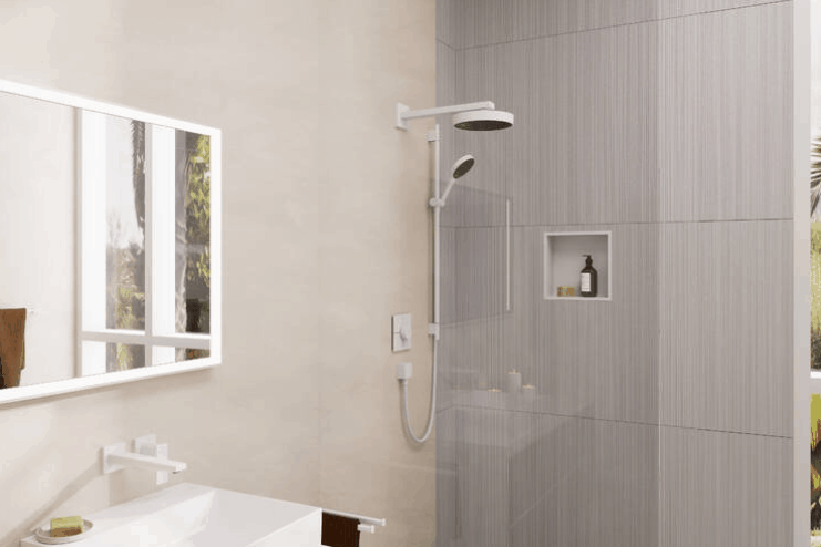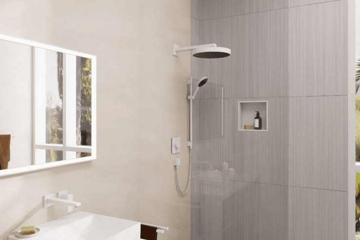 Součástí dodávky je korpus z nerezové oceli v matné bílé barvě s vodotěsnou instalační sadou, speciálně navržený pro vlhké prostředí, včetně těsnicí membrány. To usnadňuje instalaci a bezpečné používání. Kvalita od hansgrohe: Povrchová úprava korpusu a rámu se snadno čistí a déle si zachovává svůj krásný vzhled.