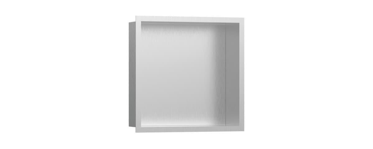 Dotaz na produkt Na splátky ještě dnesVýklenek do stěny XtraStoris Individual o rozměrech 30 x 30 x 10 cm s designovým rámem a korpusem z kartáčované nerezové oceli od hansgrohe je více než jen vysoce funkční polička do vlhkého prostředí. Korpus v kombinaci s rámem (obojí z kartáčované nerezové oceli) promění výklenek do stěny v absolutní designový poklad každé moderní koupelny. Řešení poliček pro sprchy nebo koupelny je perfektně sladěno s produkty hansgrohe FinishPlus a skvěle zapadne do designu místnosti. Výsledkem je exkluzivní, čistý vzhled koupelny.