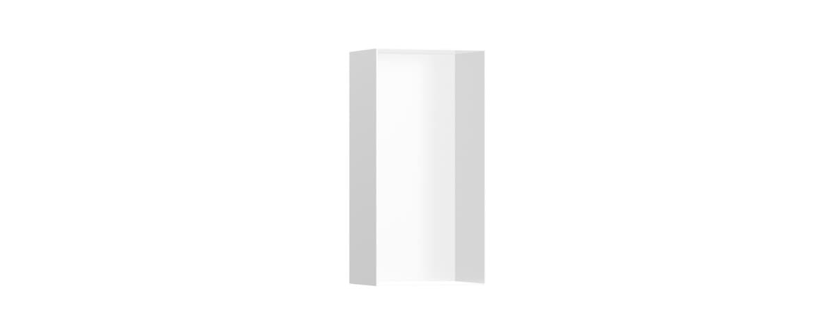 Výklenek do stěny XtraStoris Minimalistic o rozměrech 30 x 15 x 10 cm v matném bílém provedení od hansgrohe představuje stylové řešení poliček pro moderní vlhké prostředí. Díky šířce 15 cm nabízí polička zabudovaná do stěny další prostor pro vaše výrobky osobní péče. Kombinace matné bílé povrchové úpravy a designu bez rámečku podtrhuje minimalistický efekt výklenku do stěny. Pro čistý vzhled a dostatečnou volnost pohybu lze poličku vestavět tak, aby lícovala s obklady. Alternativně ji lze instalovat jako prvek vyčnívající až 55 mm ze stěny. Díky tomu je polička výrazným designovým prvkem, zejména v moderní koupelně, a ideálním doplňkem produktů hansgrohe FinishPlus. Výsledkem je exkluzivní a čistý vzhled koupelny.