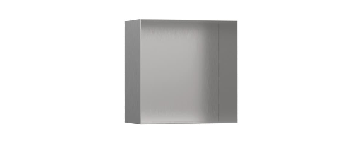 Dotaz na produkt Na splátky ještě dnesVýklenek do stěny XtraStoris Minimalistic o rozměrech 30 x 30 x 14 cm v provedení z kartáčované nerezové oceli od hansgrohe je stylové řešení poliček pro moderní vlhké prostředí. Polička zabudovaná do nabízí díky svým velkorysým rozměrům další prostor pro vaše výrobky osobní péče. Kombinace povrchové úpravy v kartáčované nerezové oceli a designu bez rámu podtrhuje minimalistický efekt výklenku do stěny. Pro čistý vzhled a dostatek volnosti pohybu lze poličku zabudovat do stěny v jedné rovině s obklady. Alternativně ji lze instalovat jako prvek vyčnívající až 55 mm ze stěny. Díky tomu je polička výrazným designovým prvkem, zejména v moderní koupelně, a ideálním doplňkem produktů hansgrohe FinishPlus. Výsledkem je exkluzivní a čistý vzhled koupelny.