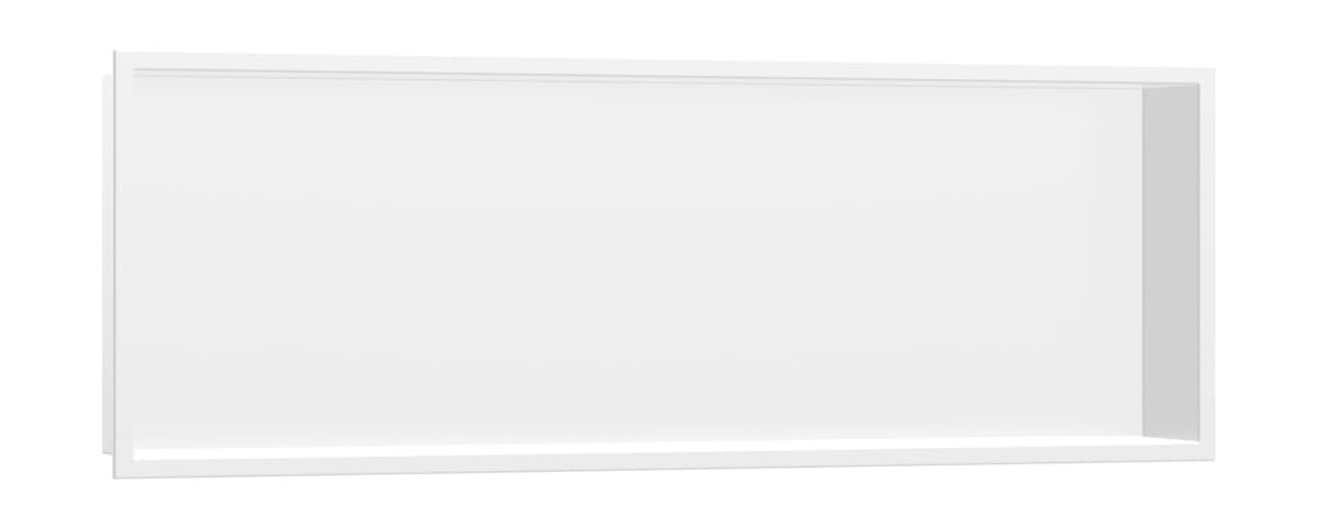Výklenek do stěny XtraStoris Original o rozměrech 30 x 90 x 10 cm v matném bílém provedení od hansgrohe představuje moderní řešení poliček pro moderní vlhké prostředí. Díky extra velkorysým rozměrům se šířkou 90 cm nabízí polička spoustu prostoru pro přípravky osobní péče. Montáž se zabudováním do stěny navíc zajišťuje více prostoru ve sprše. Matná bílá povrchová úprava dodává výklenku do stěny jedinečný vzhled. V kombinaci s rámem, hladce vytvarovaným z vysoce kvalitní nerezové oceli, se polička stává zásadním designovým prvkem koupelny: jako výrazný kontrast nebo ideální doplněk k produktům hansgrohe FinishPlus – pro jednotný vzhled koupelny.