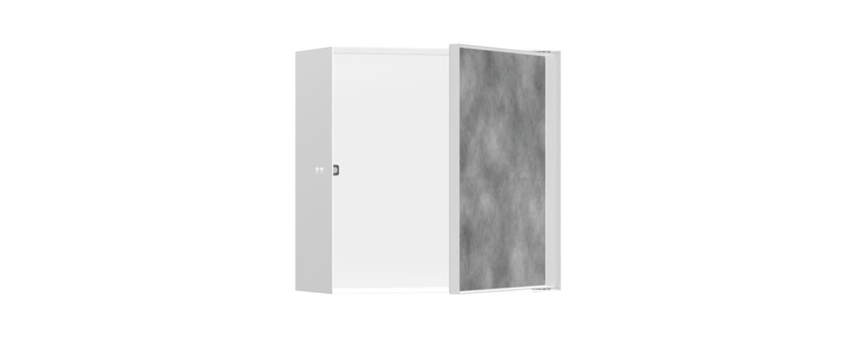 Výklenek XtraStoris Rock 30 x 30 x 14 s dvířky k překrytí obklady od hansgrohe je moderní a flexibilní řešení poličky pro sofistikované vlhké prostředí. Díky dvířkům, které lze překrýt obklady, je možné výklenek do stěny dokonale přizpůsobit designu koupelny. Nenápadně integrovaná polička pomáhá vytvořit větší a nerušivý prostor. Díky svým velkorysým rozměrům 30 x 30 x 14 cm nabízí spoustu úložného prostoru pro výrobky osobní péče. Montáž se zabudováním do stěny zajišťuje ve sprše více prostoru na pohyb. Díky provedení z nerezové oceli v matné bílé barvě zaujme výklenek svým vzhledem, i když jsou dvířka otevřená.