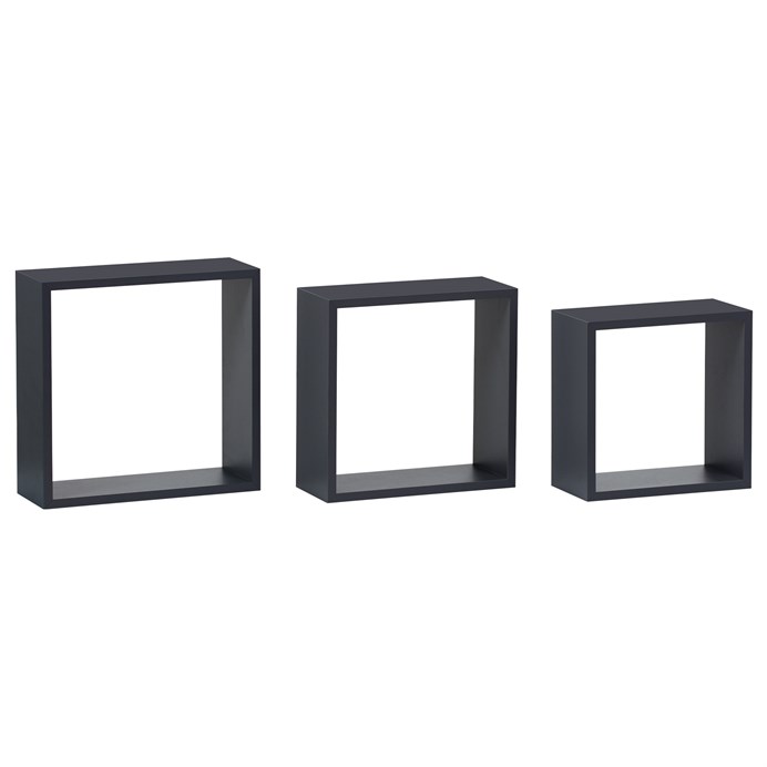 Sada tří nástěnných poliček v matném šedém provedení je vyrobena z MDF materiálu, který zajišťuje pevnost a stabilitu. Jednoduchý hranatý tvar a neutrální barva umožňují snadné začlenění do různých interiérů, od moderních po minimalistické. Poličky jsou baleny v ochranné fólii, což usnadňuje jejich bezpečnou manipulaci a montáž. Vhodné pro vystavení dekorací, knih nebo drobných předmětů, přičemž jejich kompaktní rozměry šetří prostor na stěně.