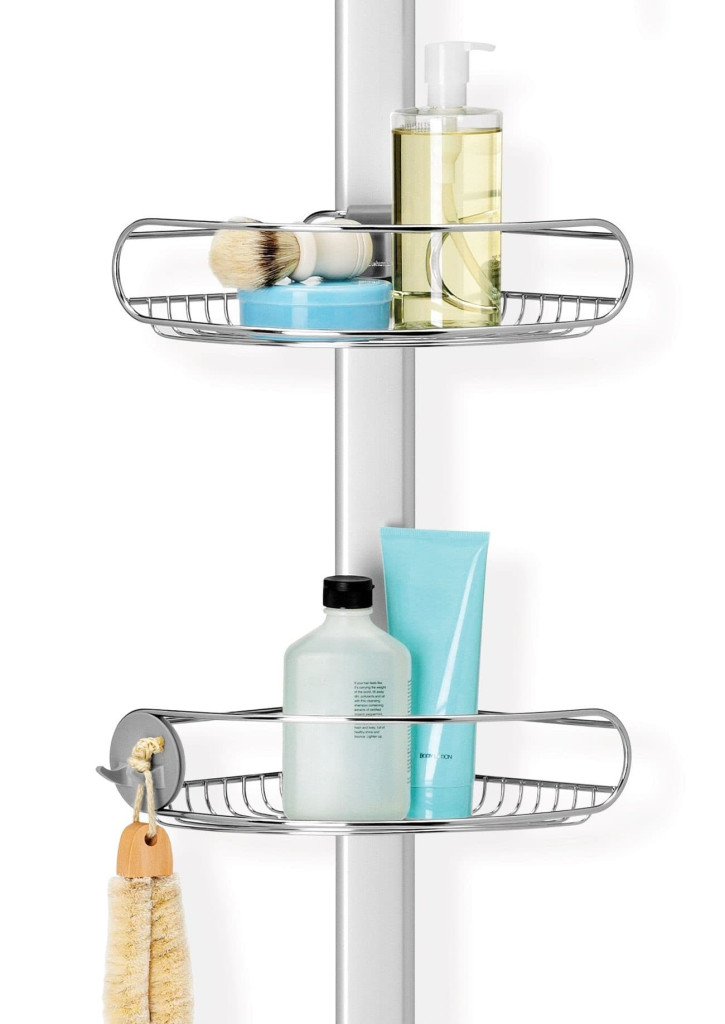 Drátěné poličky lze libovolně nastavit tak, aby vznikl dostatek prostoru i pro velké láhve, např. se šampóny či kondicionéry.