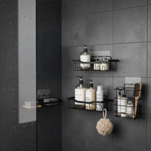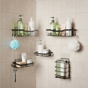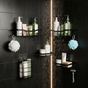 Poličky do koupelny sada 5 ksSPRINGOS HA7543 černé představují praktické a elegantní řešení pro uspořádání koupelnového prostoru. Každá polička do koupelny nabízí dostatek místa pro kosmetiku, sprchové gely i další doplňky a jednotlivé police do koupelny lze využít samostatně nebo je kombinovat jako menší regál do koupelny. Díky připevnění bez vrtáníje instalace rychlá, jednoduchá a šetrná k obkladům.