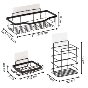 Velkou výhodou je, že součástí sady je 5 lepících držáků, které zajišťují pevné uchycení bez nutnosti nářadí. Každá koupelnová polička je vyrobena z nerezové oceli, což zaručuje pevnost, odolnost a dlouhou životnost i ve vlhkém prostředí. Moderní černé provedení dodává koupelně stylový vzhled a pomáhá udržet pořádek a přehlednost v každodenním používání.