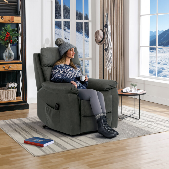 Dotaz na produkt Na splátky ještě dnesPolohovací křeslo TV-5874 GREY značky Autronic představuje moderní řešení pro maximální relaxaci s elektrickým ovládáním a třemi motory, které umožňují nezávislé nastavení opěrky zad, opěrky nohou a polohy sedáku. Potah je vyroben z kvalitní šedé látky v dekoru broušené kůže, která kombinuje příjemný dotek s elegantním vzhledem a snadnou údržbou. Konstrukce křesla je podpořena pevnou kovovou podnoží, která zajišťuje stabilitu a dlouhou životnost. Polohovací mechanismus nabízí výklopnou funkci pro snadné rozložení křesla do polohy vhodné ke spánku, což zvyšuje komfort při delším odpočinku. Součástí jsou také nastavitelné bederní opěrka a opěrka hlavy, které přispívají k ergonomickému sezení a snižují zatížení páteře. Široké a měkce polstrované područky doplňují pohodlí a zároveň umožňují snadné opření paží. Praktická boční kapsa slouží k uložení drobných předmětů, což zvyšuje funkčnost v domácím prostředí. Celková nosnost křesla odpovídá standardním požadavkům na komfortní sezení a rozměry jsou navrženy tak, aby křeslo bylo vhodné do většiny obývacích pokojů či relaxačních zón.