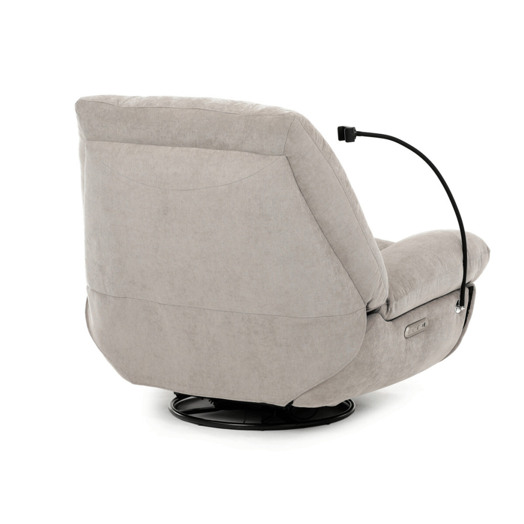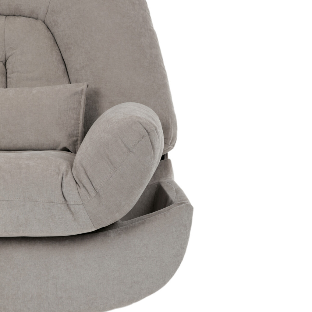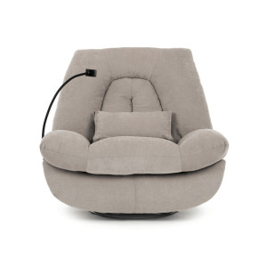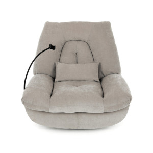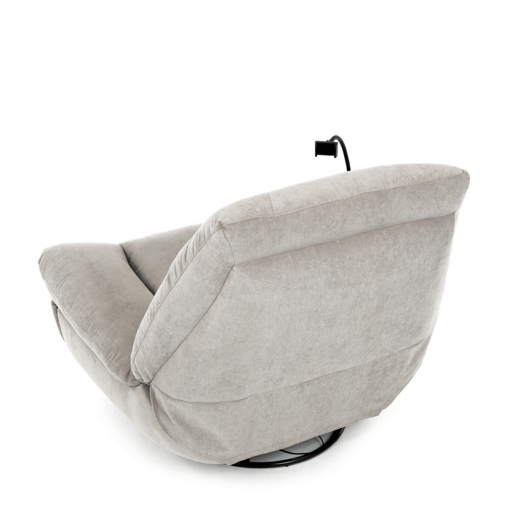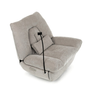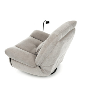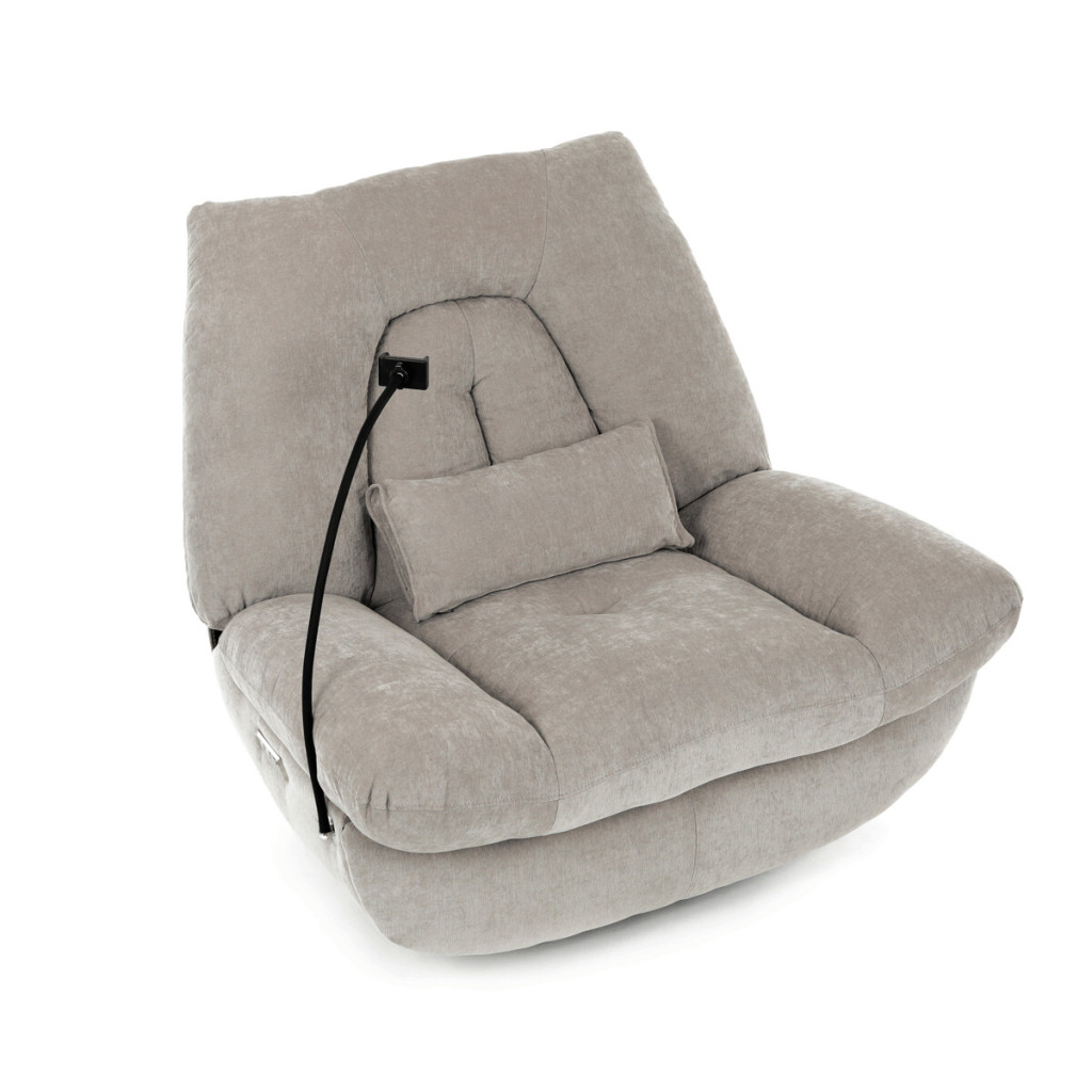 TV křeslo s elektrickým polohováním v béžovém potahu nabízí komfortní sezení s možností nastavení polohy pomocí jednoho motoru. Kovová podnož umožňuje rotaci až do 240° a houpací pohyb o 30°, což přispívá k relaxaci a pohodlí. Zabudované ovládání je doplněno hlasovým ovládáním pro snadné nastavení, zatímco integrovaný Bluetooth reproduktor zajišťuje kvalitní zvukový doprovod. Praktické funkce zahrnují držák telefonu, USB-A a USB-C porty pro nabíjení zařízení a uložný box pro drobné předměty. Pevná konstrukce s nosností 160 kg a ergonomicky tvarované čalounění z lanýžové látky zajišťují dlouhodobý komfort i stabilitu.