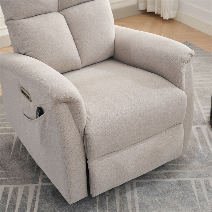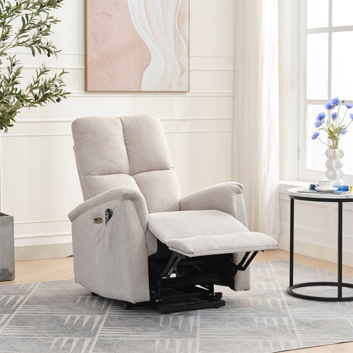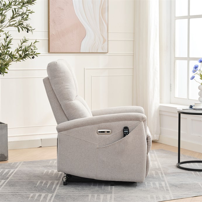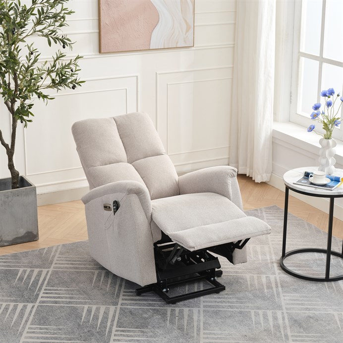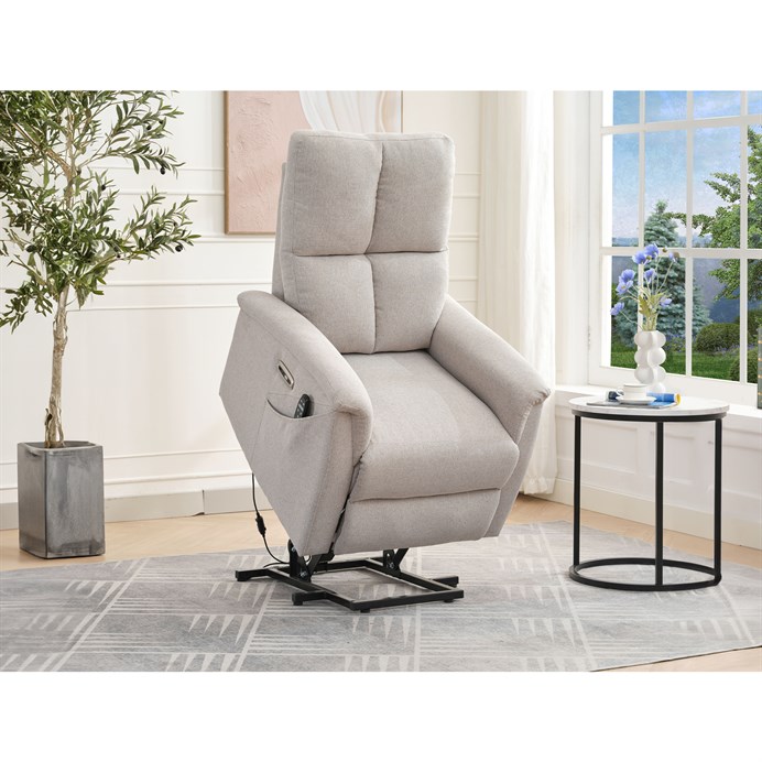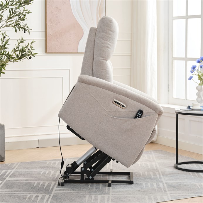 Naše elektricky ovládané relaxační křeslo je navrženo s ohledem na vaše pohodlí a zdraví. S funkcemi jako jsou vibrační masáž a vyhřívání, poskytuje úlevu od každodenního stresu a napětí. Integrované ovládání s USB porty je moderním doplňkem, který vám umožní zůstat připojení a nabíjet svá zařízení, aniž byste museli vstávat. Výklopná funkce je skvělá pro seniory nebo osoby s omezenou pohyblivostí, usnadňuje vstávání a zajišťuje bezpečnost. Zakupte si naše krémové elektrické relaxační křeslo ještě dnes a začněte si užívat luxusní pohodlí ve svém domově.