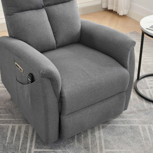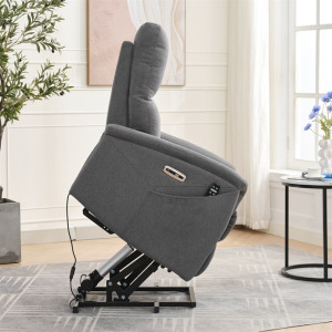 Naše elektricky ovládané relaxační křeslo je navrženo s ohledem na vaše pohodlí a zdraví. S funkcemi jako jsou vibrační masáž a vyhřívání, poskytuje úlevu od každodenního stresu a napětí. Integrované ovládání s USB porty je moderním doplňkem, který vám umožní zůstat připojení a nabíjet svá zařízení, aniž byste museli vstávat. Výklopná funkce je skvělá pro seniory nebo osoby s omezenou pohyblivostí, usnadňuje vstávání a zajišťuje bezpečnost. Zakupte si naše šedé elektrické relaxační křeslo ještě dnes a začněte si užívat luxusní pohodlí ve svém domově.