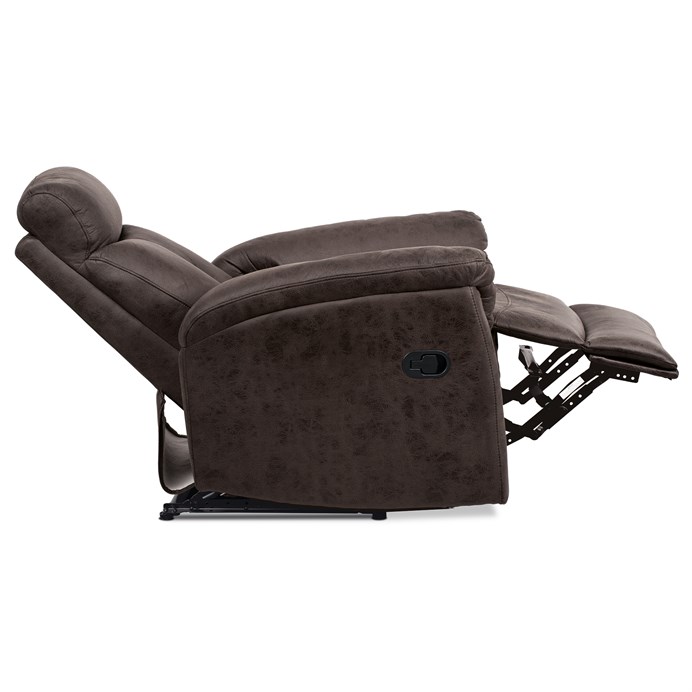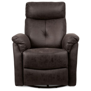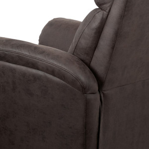 Polohovací TV křeslo v hnědém odstínu s látkou ve vintage dekoru kůže nabízí komfortní sezení s manuálním ovládáním polohovacího mechanismu. Křeslo je vybaveno robustní kovovou podnoží v černém laku, která zajišťuje stabilitu a dlouhou životnost. Designové prošití na opěradle a sedáku podtrhuje stylový vzhled a zároveň přispívá k pevnosti čalounění. Polohovatelná opěrka zad a výsuvná podnožka umožňují nastavení ideální pozice pro relaxaci při sledování televize. Díky kvalitnímu materiálu a konstrukci je křeslo vhodné pro každodenní použití s důrazem na pohodlí a funkčnost.