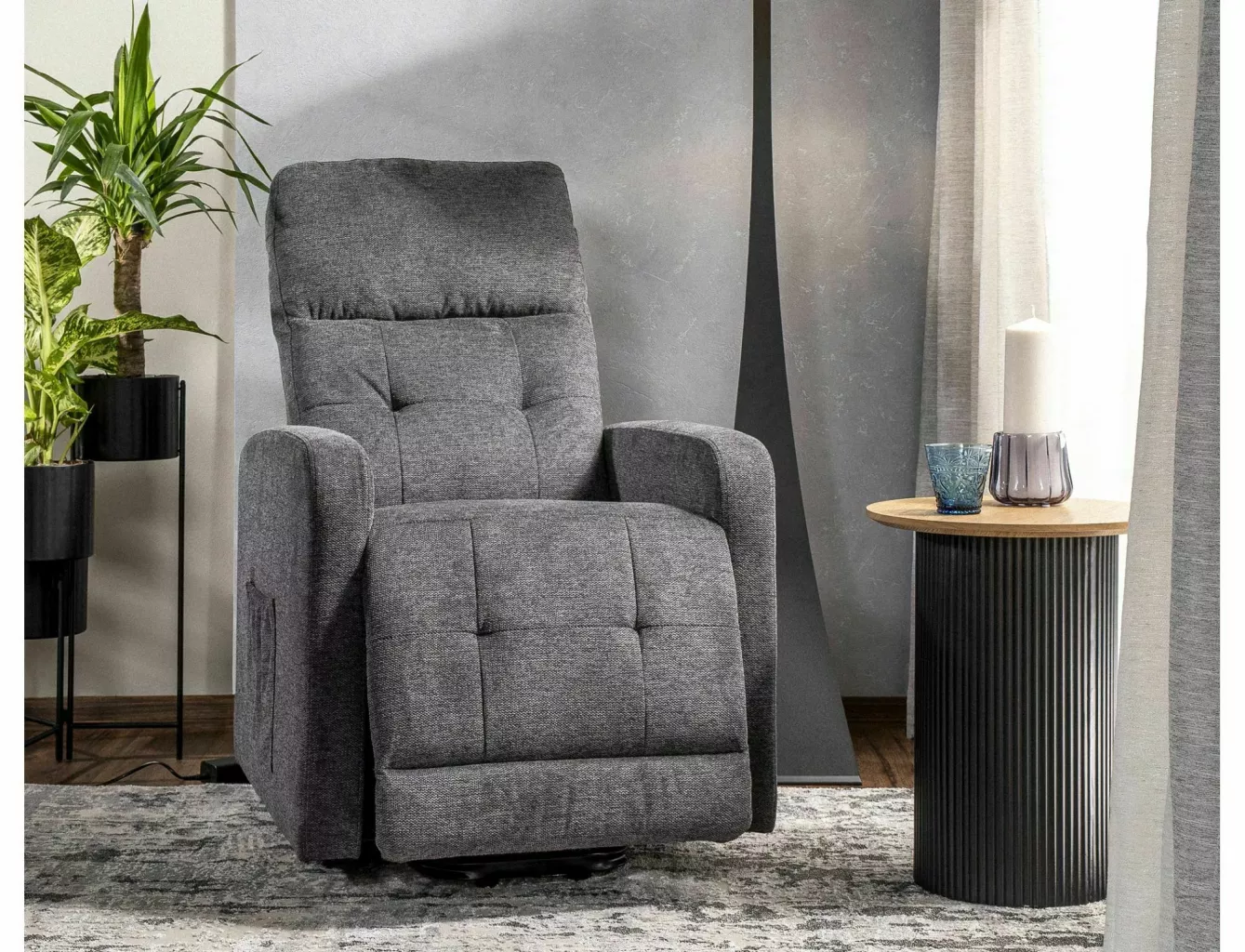 Dotaz na produkt Na splátky ještě dnesPolohovací křeslo, čalounění: látka Brego, rám: kov, barva: 18 tmavě šedá / černá. Elektrické polohování, funkce: vzpřímená poloha.