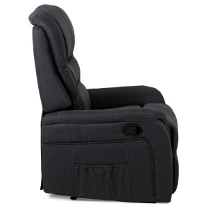Polohovací TV křeslo v šedé látce kombinuje komfort s praktickým designem vhodným pro relaxaci i sledování televize. Robustní kovová podnož zajišťuje stabilitu a dlouhou životnost, zatímco manuální mechanismus umožňuje snadné nastavení polohy opěradla a podnožky podle individuálních potřeb. Čalounění z kvalitní látky je doplněno designovým prošitím, které podtrhuje moderní vzhled křesla. Praktickým doplňkem je kapsa na příslušenství umístěná na boku, která nabízí prostor pro ovladače nebo časopisy. Křeslo lze rozložit do polohy vhodné pro odpočinek, přičemž jeho celková konstrukce je navržena pro dlouhodobé používání.