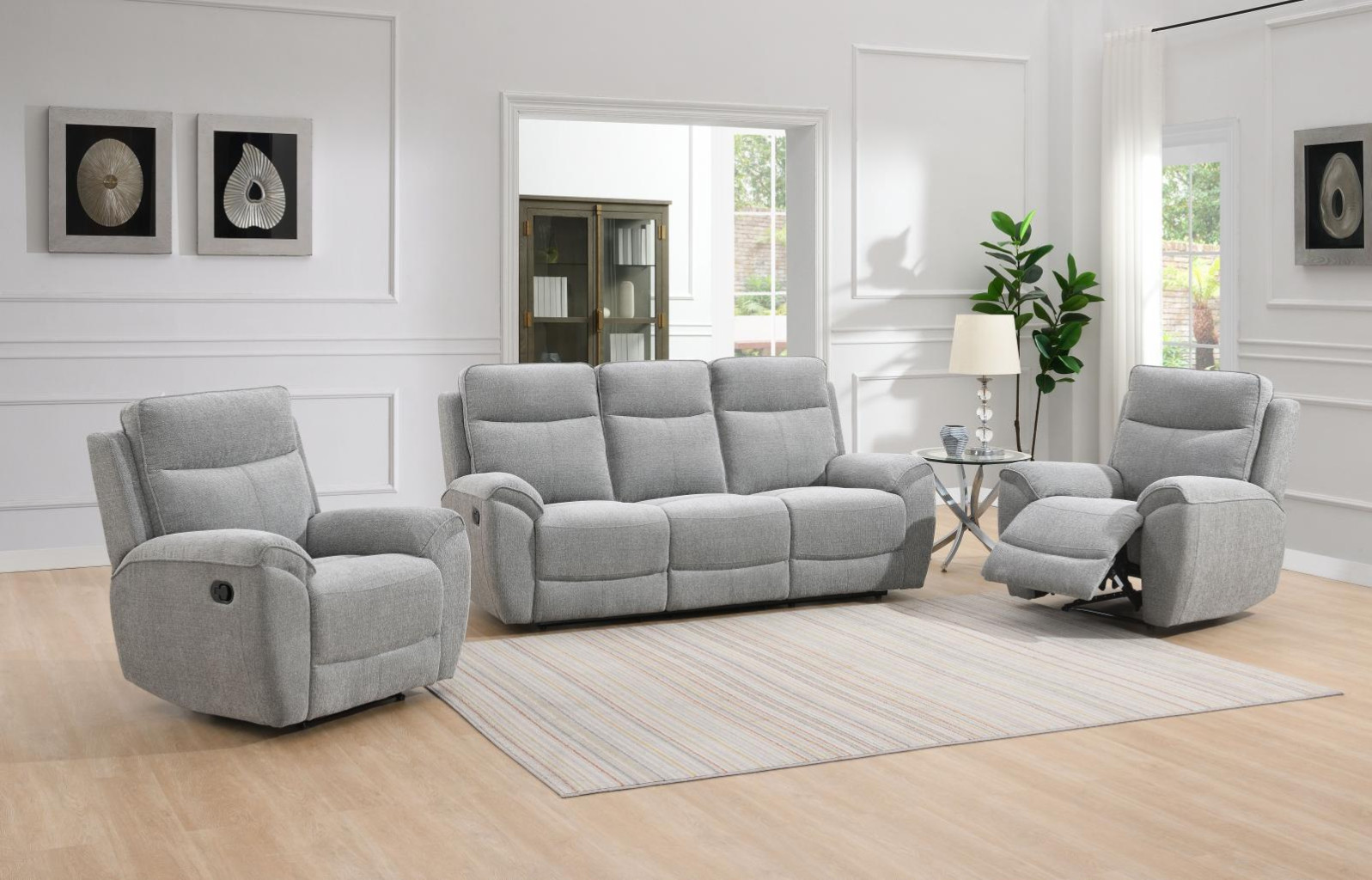 Sestava se skládá z polohovacího trojsedu (polohování je na dvou bočních sedácích, prostřední sedák je bez polohování) a dvou polohovacích křeslech. Polohování je manuální pomocí jednoduchého tlačítka na bocích sedačky.