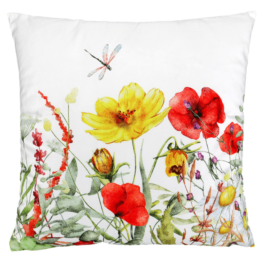 Dotaz na produktPolštář s výplní o rozměru 45 x 45 cm je potažený sametovým polyesterovým potahem v bílé barvě s jemným motivem rozkvetlé jarní louky. Sametový povrch dodává polštáři příjemnou měkkost a vizuální efekt, který podtrhuje barevné květy a jemné detaily motýlů a vážek. Výplň zajišťuje dostatečnou měkkost a tvarovou stálost, což přispívá k pohodlí při použití na pohovce nebo křesle. Polštář je vhodný pro doplnění interiéru s přírodními nebo svěžími motivy a snadno se udržuje díky polyesterovému materiálu.