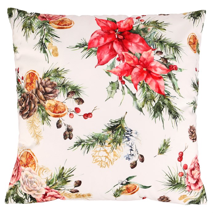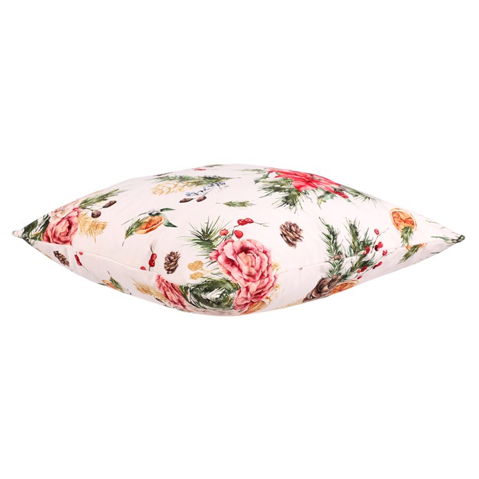 Dotaz na produktElegantní polštář s vánočním motivem květů, šišek a jehličí vnese do interiéru kouzlo zimní přírody. Sametový povrch na bílém základu zvýrazňuje bohatý barevný tisk, který působí slavnostně a vkusně. Potah je odnímatelný a pratelný na 30 °C, výplň není určena k praní. Rozměr 45 × 45 cm, ideální doplněk pro vánoční ladění domova.