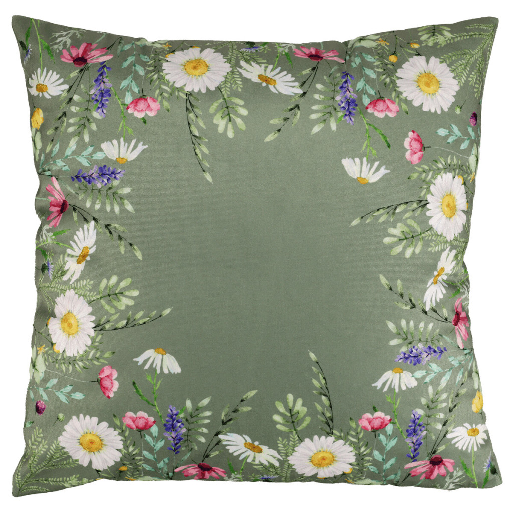 Dotaz na produktPolštář s výplní v zeleném sametovém provedení zdobí jemný vzor lučních květin, který přináší do interiéru svěží a přírodní atmosféru. Povrch je vyroben ze 100% polyesteru s měkkou a příjemnou texturou, která se snadno udržuje. Rozměr 45 x 45 cm je univerzální pro použití na pohovky, křesla nebo postele. Polštář je vyplněný měkkou výplní, která zajišťuje pohodlný opěrný efekt a tvarovou stálost. Vynikne v kombinaci s dalšími dekorativními doplňky v přírodních odstínech.
