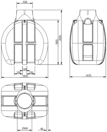 Výška jímky nádrže IS vč. komínku (mm): 2225