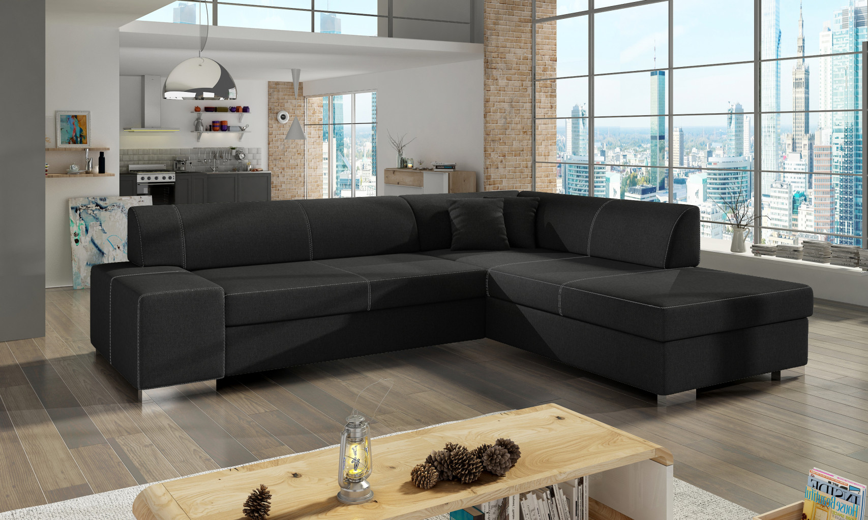 Dotaz na produkt Na splátky ještě dnesPorto je klasická, minimalistická a tvarově jednoduchá rohová pohovka, která se hodí do každé místnosti. Rozměry nábytku 278 x 217 x 74 cm zaručují prostornost a pohodlí během dne a maximální pohodlí 210 x 135 cm v noci. Díky mechanismu delfín je rozložení postele do spací polohy triviálně snadné a pohodlné. Mezi další vlastnosti tohoto modelu patří i prostorný ložní prádlo. Pocit měkkosti a pružnosti sedáku je zaručen kombinací pěny T30 s odolnými a stabilními vlnitými pružinami. Tato kombinace ovlivňuje vnímané pohodlí, ale také zaručuje absenci deformací a nevzhledných promáčklin. Mezi charakteristické rysy tohoto modelu lze jistě zařadit pečlivé, klasické provedení, široký výběr barev a čalouněné opěradlo. Pokud hledáte něco klasického a zároveň všestranného - Porto bude pro vás jistě ideální.Látka: Sawana 14