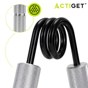 Pomůcka je vybavena ocelovou 34 mm pružinou, která zajišťuje stabilní a dlouhodobě spolehlivý odpor. Hliníkové protiskluzové rukojeti poskytují jistý a pohodlný úchop i při intenzivním cvičení. Díky kompaktní velikosti ji snadno vezmete s sebou kamkoli a můžete trénovat doma, v práci i na cestách.