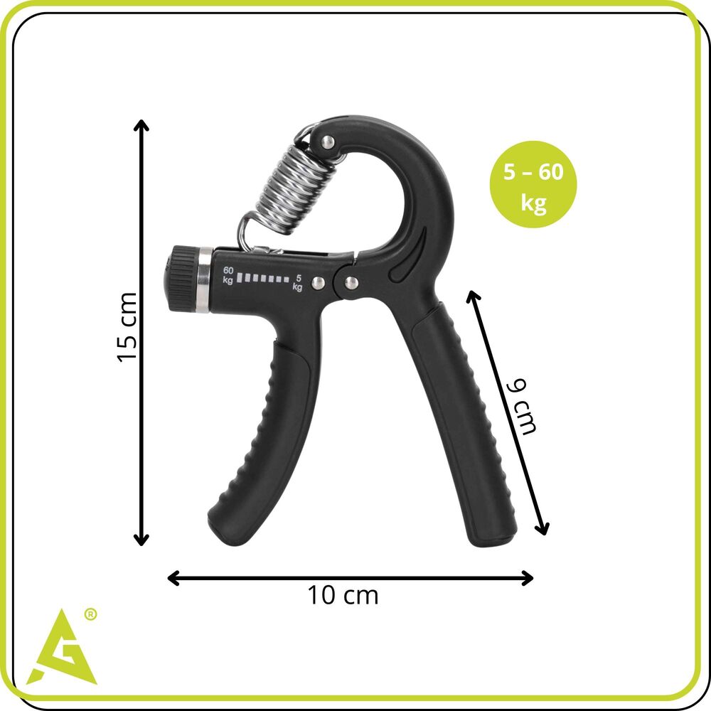 Ruční posilovač prstů a zápěstí, plně nastavitelný odpor 5–60 kg, ergonomické protiskluzové rukojeti pro pohodlný a jistý úchop, optimální velikost pro snadné používání doma i na cestách, odolné materiály pro dlouhou životnost. Vhodný pro silový trénink, zlepšení úchopu i rehabilitaci po zranění. Pomáhá posilovat prsty, dlaň i zápěstí.