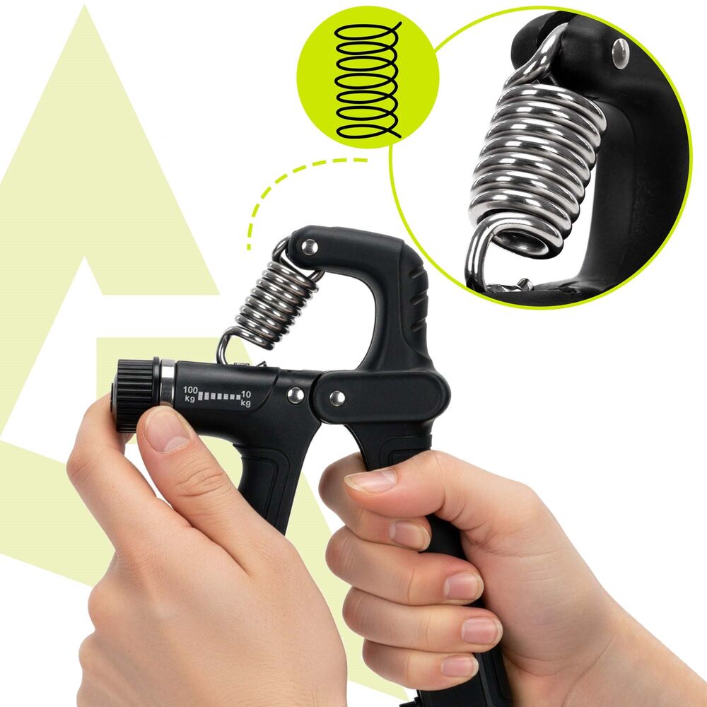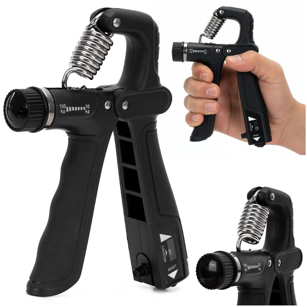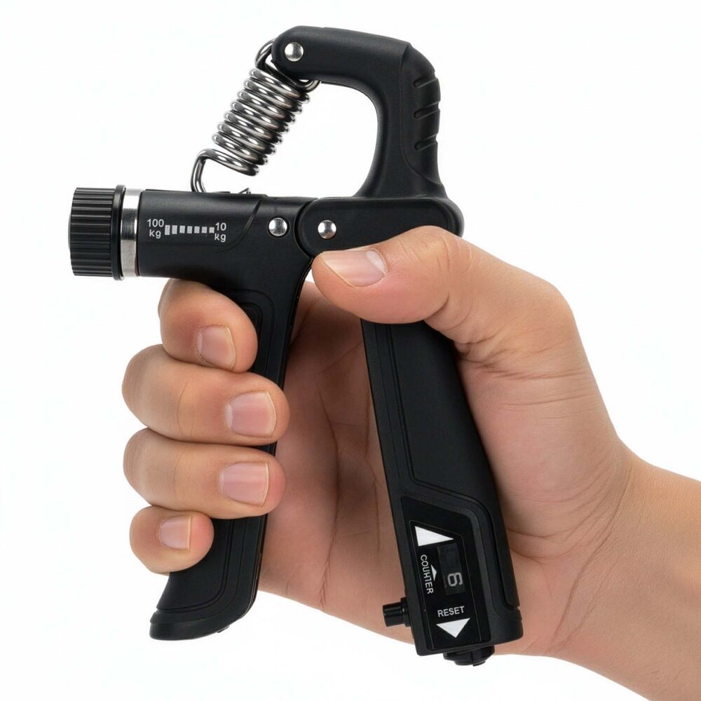 Ruční posilovač prstů a zápěstí určený pro efektivní posilování úchopu. Nabízí plynule nastavitelný odpor v rozsahu 10–100 kg, takže se přizpůsobí začátečníkům i pokročilým. Integrované počítadlo stisků s tlačítkem nulování umožňuje sledovat tréninkový pokrok. Protiskluzové rukojeti a optimální velikost zajišťují pohodlné a jisté držení při cvičení.