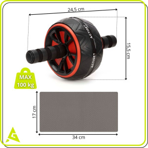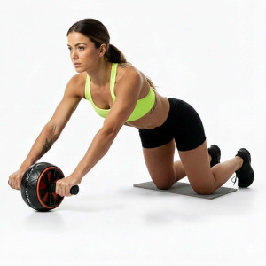 Kolečko je vybaveno ergonomickými rukojeťmi s pěnovým potahem, které zajišťují pohodlný a jistý úchop i při náročnějším cvičení. Gumový běhoun kolečka výrazně zvyšuje trakci a stabilitu na různých typech povrchů. Součástí balení je také ochranná podložka na kolena, která zvyšuje komfort při cvičení. Konstrukce s nosností až 100 kg zaručuje spolehlivost a bezpečné používání.