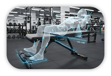 Komfort, který ti dovolí trénovat déle a efektivněji. Polstrování o tloušťce 5 cm s hustou pěnovou výplní se přizpůsobí tělu, snižuje tlak a pomáhá omezit únavu. Ergonomické opěrky na nohy s měkkými polštáři poskytují stabilní a pohodlnou oporu během náročnějších cviků. Výsledek? Lepší soustředění, vyšší výkon a maximální pohodlí při každé sérii.