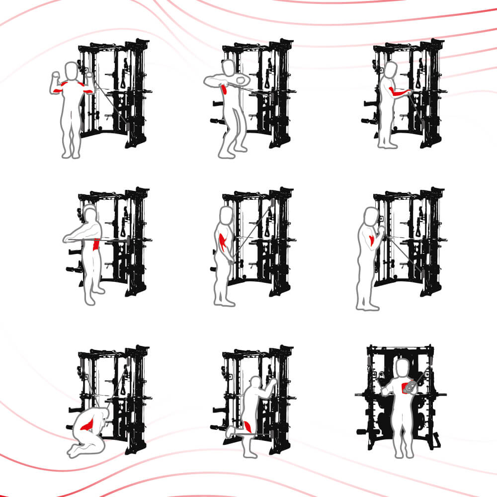 Se stojanem navíc získáte široký výběr příslušenství, díky kterému budete mít k dispozici desítky tréninkových variací a zaměříte se na různé svalové skupiny. Ať už se jedná o různé adaptéry ke kladkám, držáky na olympijské tyče, opěrku nohou či polohovatelná multifunkční bradla, nudit se rozhodně nikdo nebude – nebo alespoň ne na dlouho!