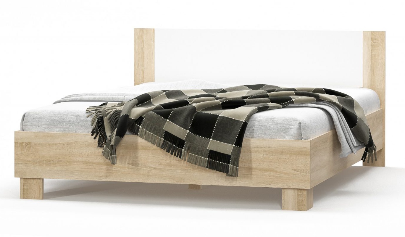 Postel šíře 160 cm z ložnicové řady. Moderní provedení v barvě dub sonoma v kombinaci s bílou dokonale doplní váš interiér. Postel je vyrobena z kvalitní LTD desky. Nabídka komponentů této sektorové řady umožňuje sestavit si nábytek do ložnice nebo studentského pokoje dle vlastních představ. Součástí postele je rošt. V ceně není zahrnuta matrace, tu je nutno dokoupit, vhodný rozměr 160 x 200 cm nebo 2 ks 80 x 200 cm. Dodáváme v demontovaném stavu. Maximální zatížení na 1 místo je 120 kg. Celková nosnost postele je 240 kg.