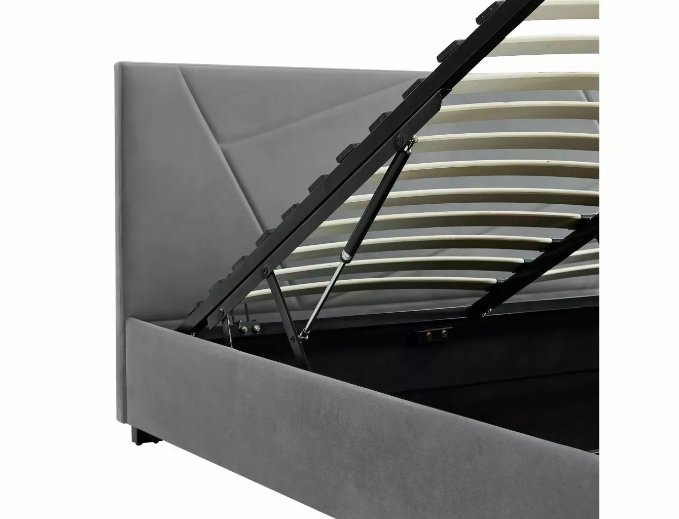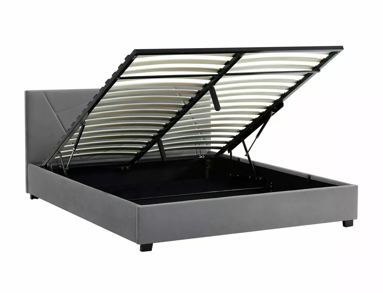 Dotaz na produkt Na splátky ještě dnesPostel s úložným prostorem, sametová látka, barva: tap.192 šedá. Součástí je rám z ohnutých lamel upevněných v flexibilních držácích. Plynové pružiny. Rozměr matrace 160x200cm (cena bez matrace).