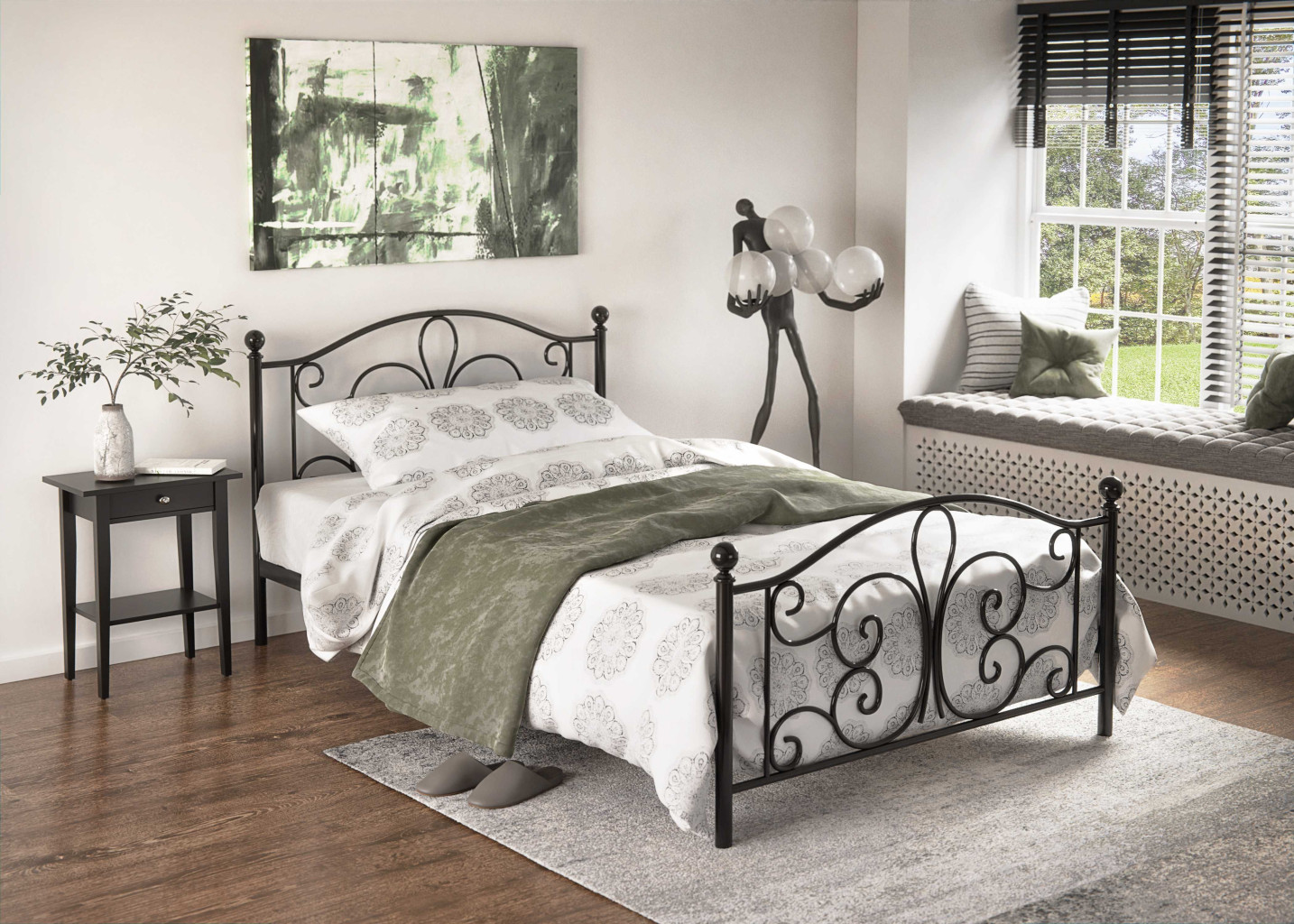 Moderní postel vyrobena z kovu. Postel se prodává bez matrace.