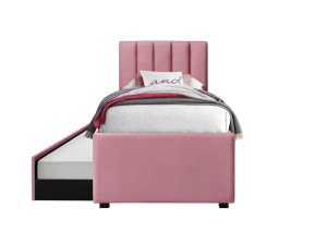Dotaz na produkt Na splátky ještě dnesrozměry: 96/221/122 cm; manželská postel s výsuvnou spodní matrací; materiál: látka - samet, barva: růžová; * postel bez matrace, volitelná matrace POLARIS 90 nebo SYRIUSZ 90
