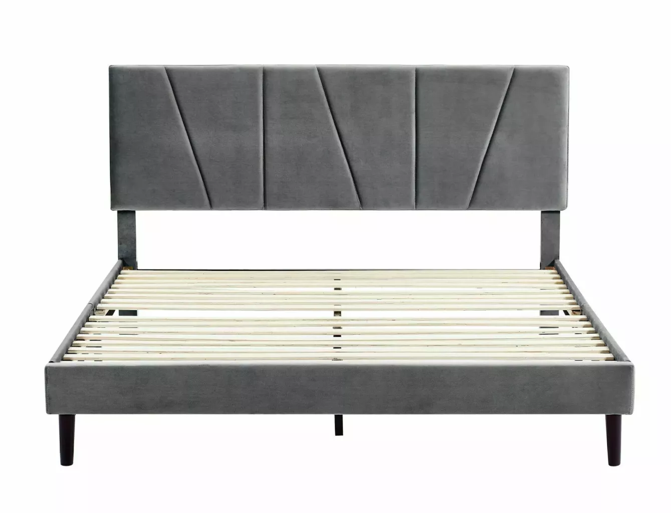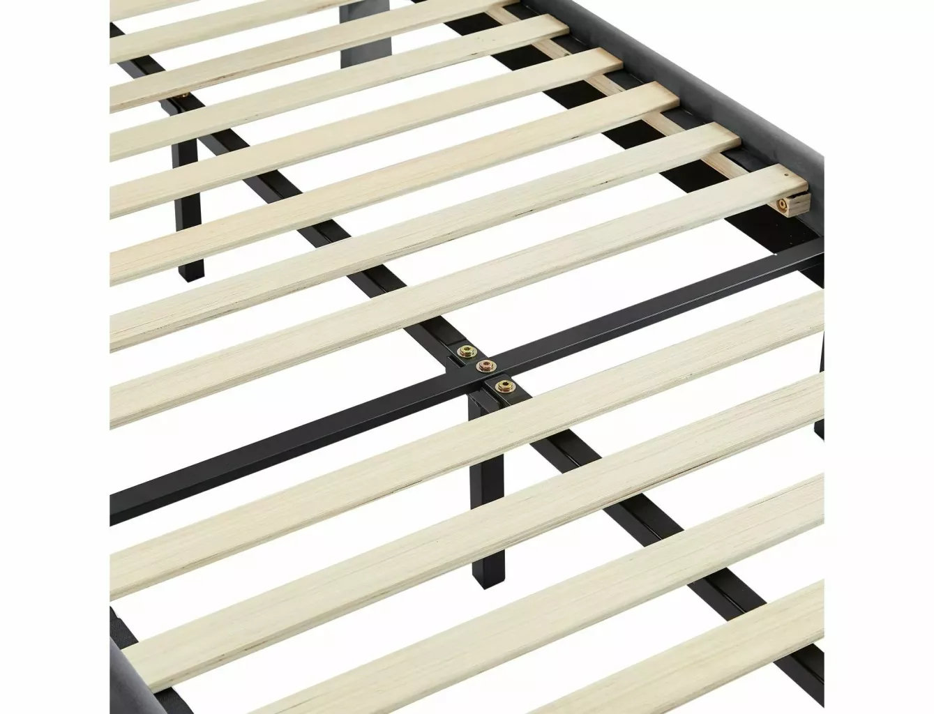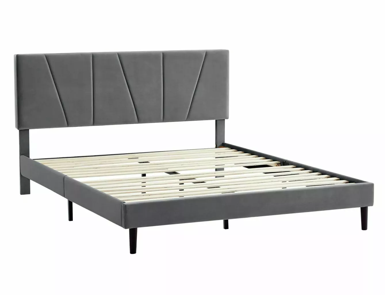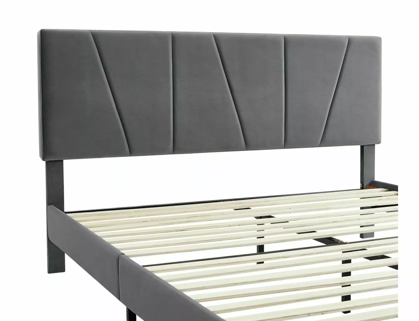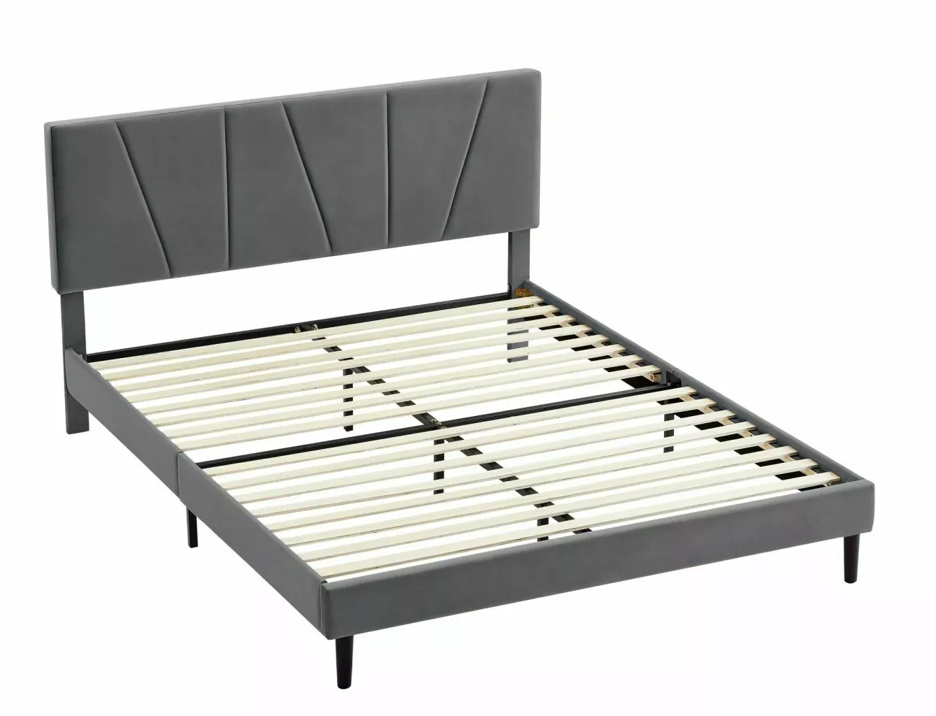 Dotaz na produkt Na splátky ještě dnesPostel, sametová látka, barva: tap.192 šedá. Dřevěný lamelový rošt součástí dodávky. Rozměr matrace: 160x200cm (cena bez matrace).