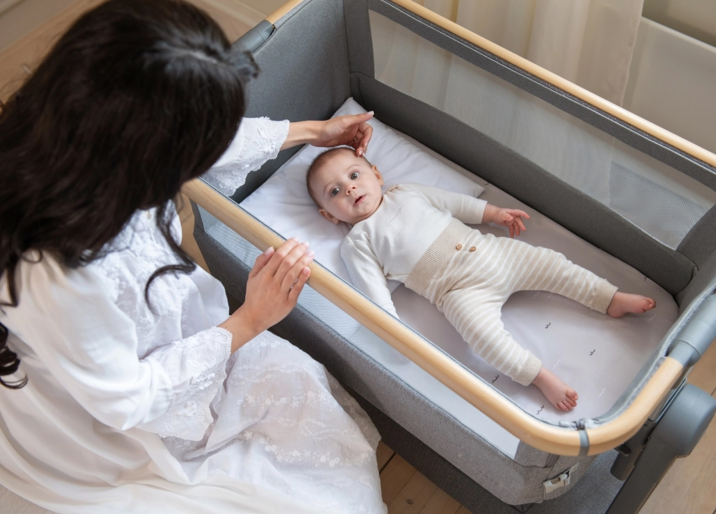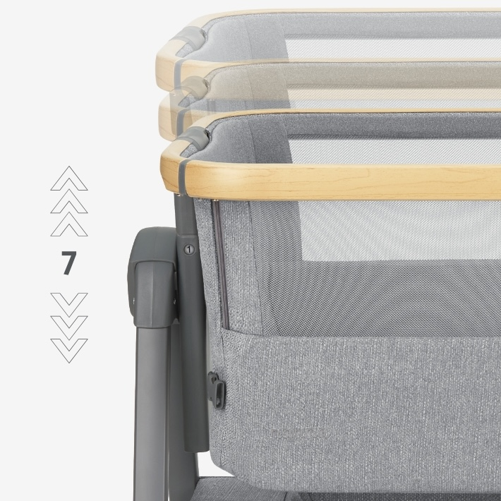 • 7 úrovní výškového nastavení, aby postýlka pasovala k různým typům postelí