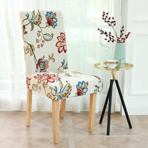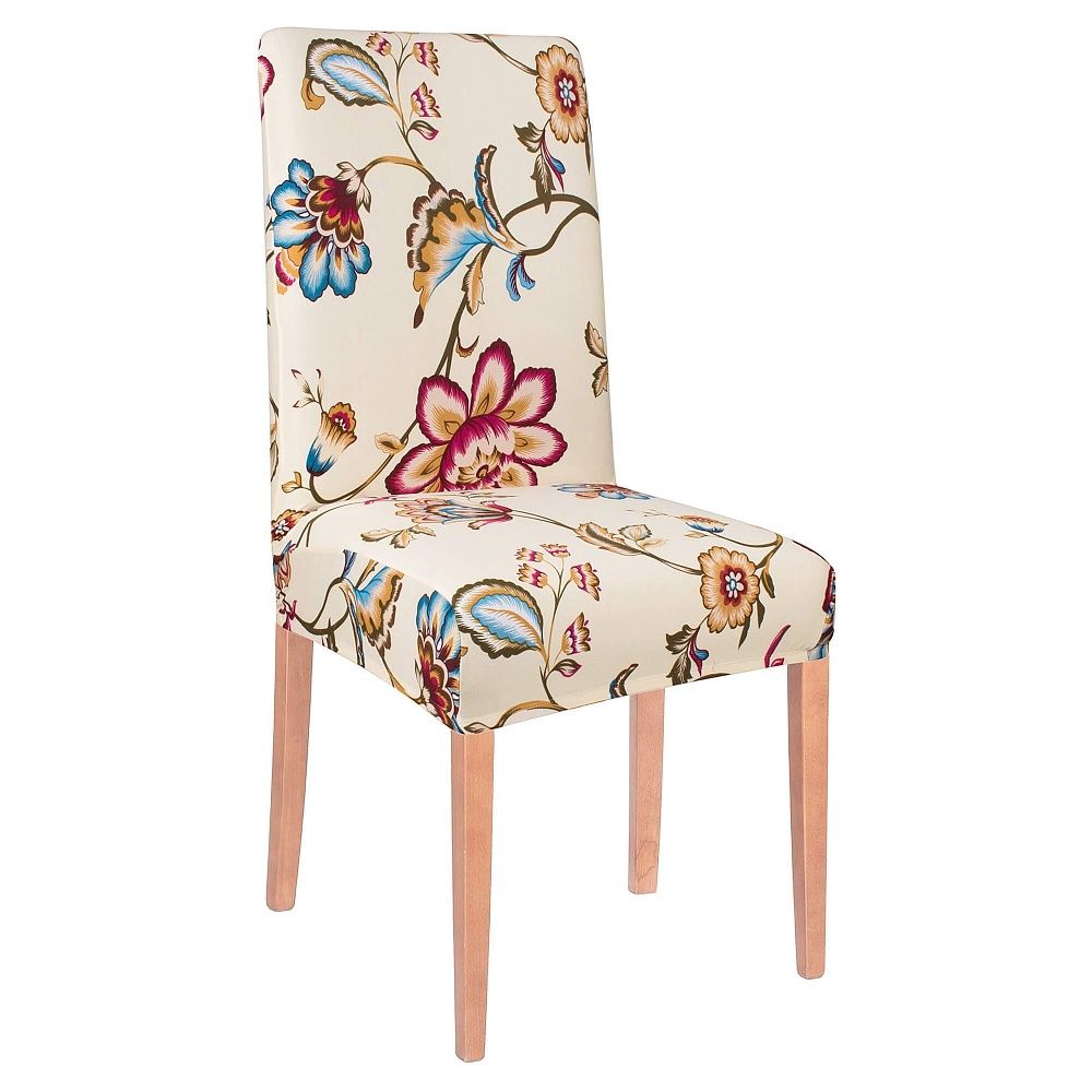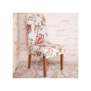 Elegantní potah na židli se vzorem květin. Univerzální velikost vhodná pro většinu židlí. Příjemný a hebký materiál s příměsí Spandexu.
