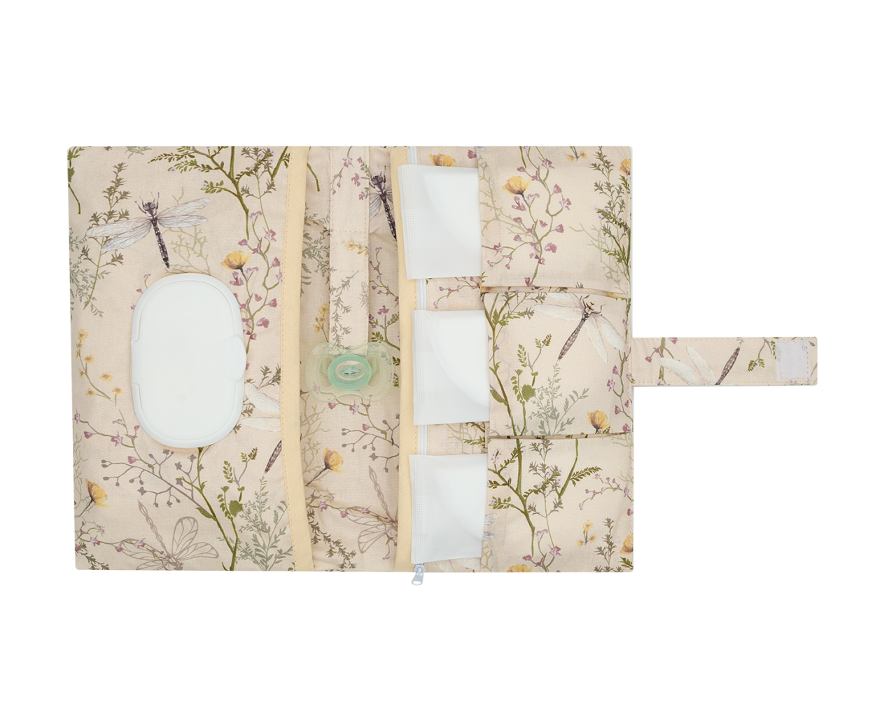 Dotaz na produktPraktický cestovní organizér v krásném textilním provedení s vnitřními přehrádkami vám pomůže přehledně uložit přebalovací potřeby pro vaše miminko. Uvnitř najdete kapsu na pleny, přihrádku na vlhčené ubrousky, kapsu na zip a 3 malé kapsy na drobnosti. Organizér se snadno zapíná na suchý zip.