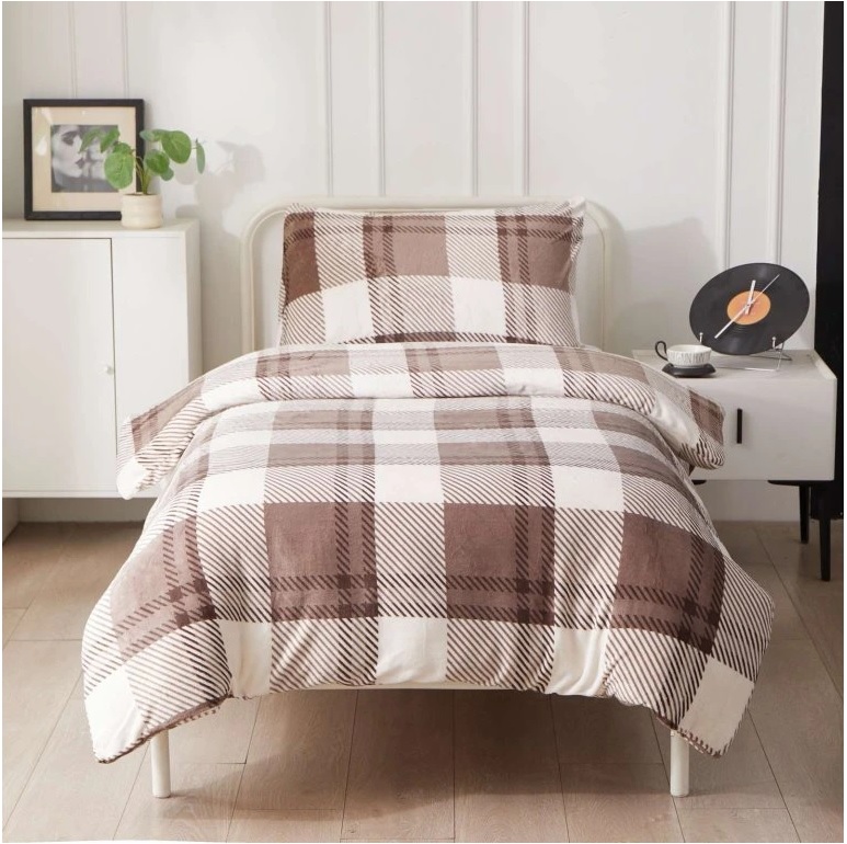 Povlečení Mikroplyš Hnědé káro 140x200, 70x90 cm