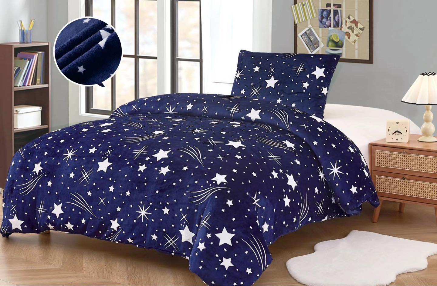 Povlečení Mikroplyš Hvězdné nebe 140x200, 70x90 cm tmavě modré