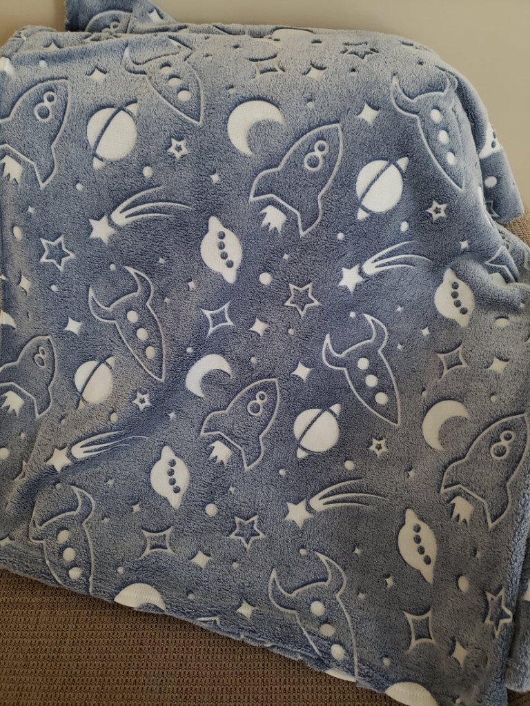 Motiv vesmíru ve tmě svítí. Stačí, když necháte přes den na denním světle, kde se „nabije“ a v noci bude krásně zářit.