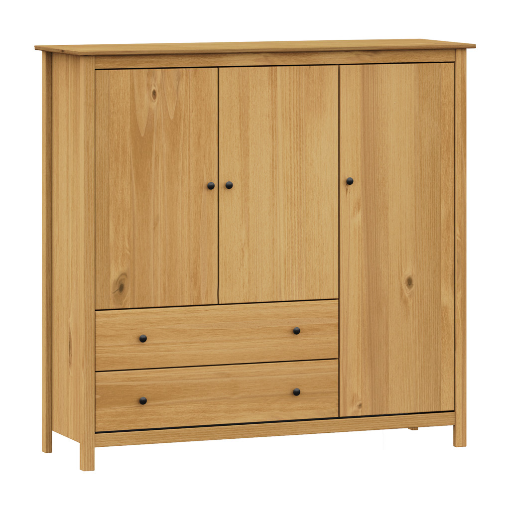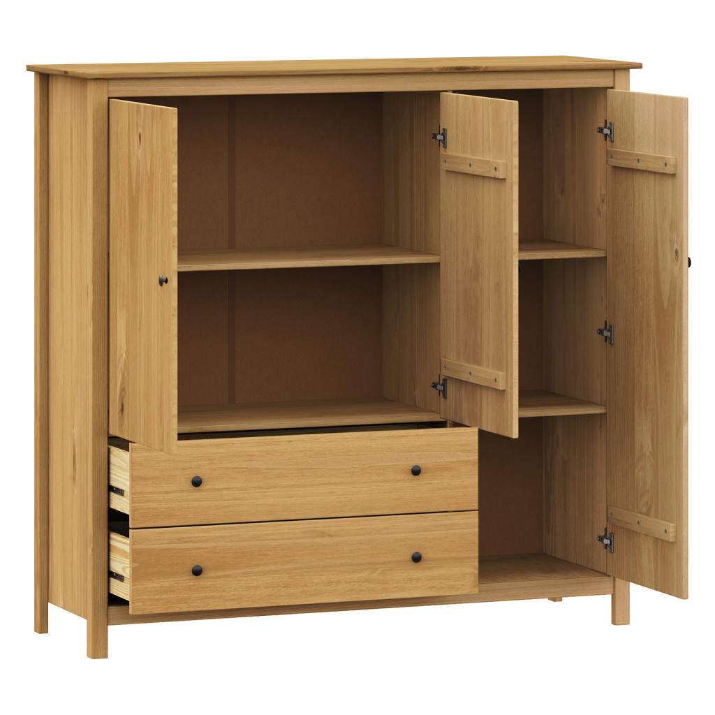 materiál masiv borovice voskovaná v medovém odstínu kovové úchytky v barevném provedení černěná mosaz 3 dvířka a 2 zásuvky s kovovými pojezdy