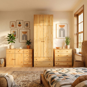 Dotaz na produkt Na splátky ještě dnesmateriál masiv borovice, lakované provedení 4 široké zásuvky s kovovými pojezdy, hloubka zásuvky 32,5 cm
