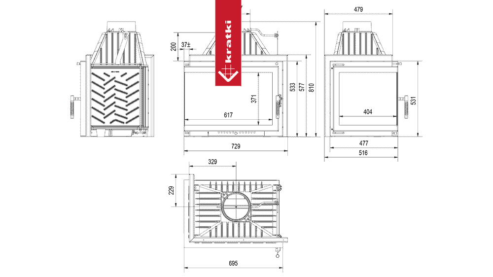 Pravý litinový krb KRATKI SIMPLE BS 15 kW Ø