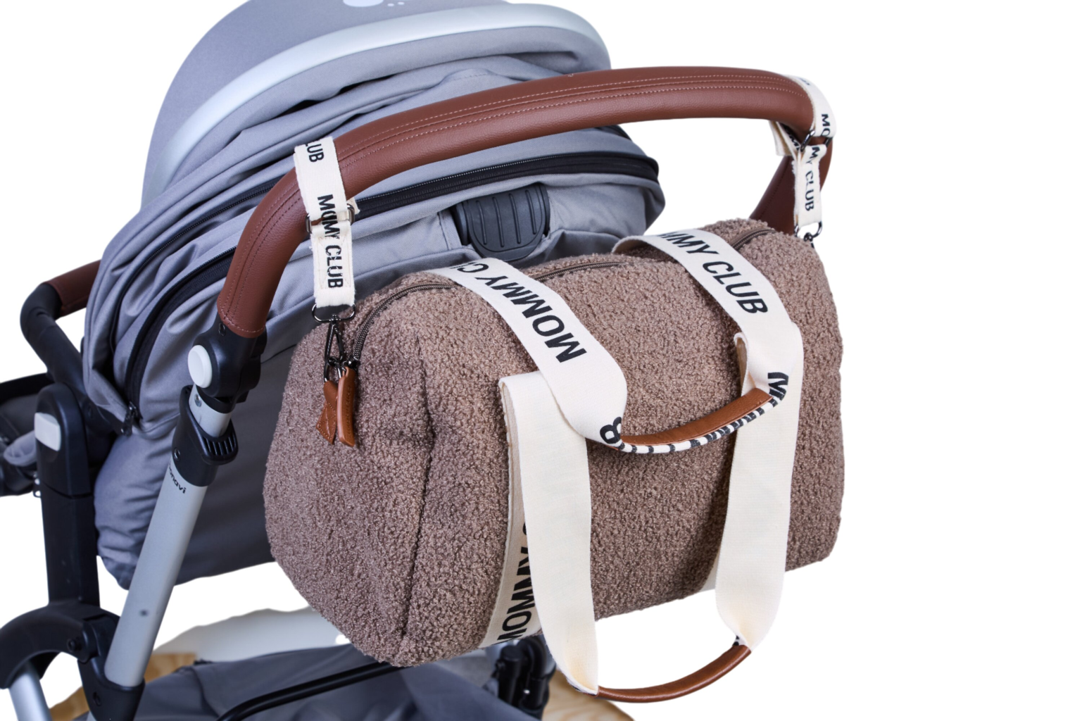 Přebalovací taška s uzavíráním na zip je vybavena držadly pro nošení v ruce, popruhem pro nošení přes rameno i úchyty pro zavěšení na kočárek.