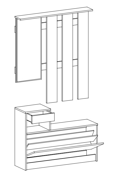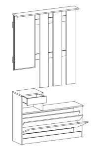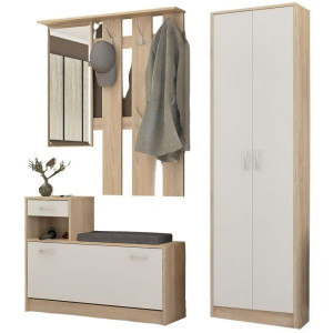 Dotaz na produkt Na splátky ještě dnesModerní předsíňová stěna se zrcadlem a skříní. Stěna je vyrobena z kvalitní laminátové desky v barevné kombinaci dub sonoma/bílá mat. Součástí stěny je věšáková stěna se zrcadlem a poličkou a malý výklopný botník s policí a zásuvkou (100x187x27,5 cm), šatní skříň (55,3x191x27,5 cm) a podsedákem (65x2x28 cm). Jednotlivé díli lze zakoupit zvlašť. Dodáváme v demontovaném stavu.